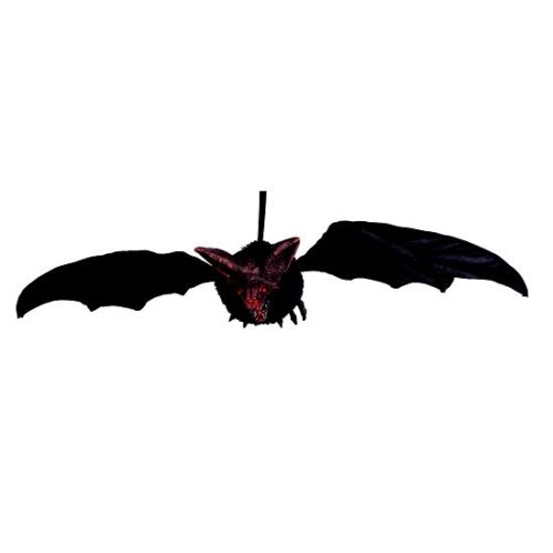 Hanging bat with blinking L.E.D. eyes and 3 foot wing span. Requires 2 AA batteries not included.