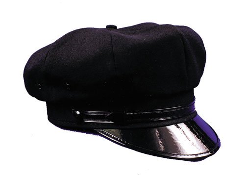 Quality Black cloth hat with vinyl bill and band.