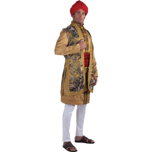 Includes tunic, under tunic, pants, sash, and turban. Does not include shoes.