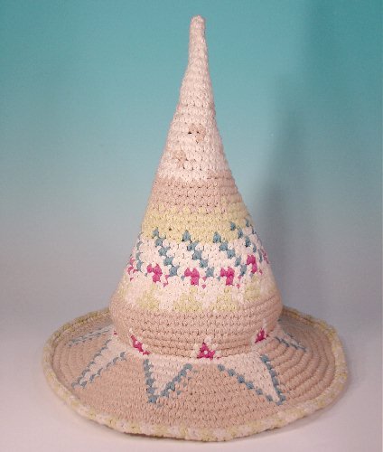 Witch Hats Hand Crocheted 100% cotton, custom hand made by Lilli. These witch hats are so strikingly beautiful that folks in public often don't even recognize them as a witch hat. They are a great accent for any wardrobe, and are so completely cute! Lilli's witch hats are finely crocheted with durable acrylic yarn. They are fashionable and easily hand washed. Most Witch Hats have a wire support hidden in the brim, so you can sculpt the edge to suit your mood.