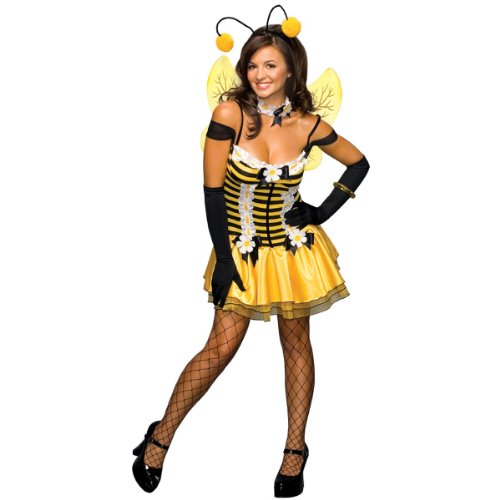 Adult Costumes - Buzz your way to the top of the fashion hive in this chic yellow and black Honey Bumble Bee Costume from the Secret Wishes Collection! Includes black and yellow dress, choker, headpiece and the wings. Fishnet stockings and gloves sold separately. To insure there are no wardrobe malfunctions, hold things in place with our body tape!
